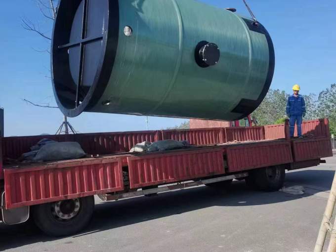 攀枝花一體化預制泵站廠家生產的罐體分層玻璃鋼儲罐內襯層通常由聚酯表面氈、內襯樹脂組成,樹脂含量為80%-90%,大型容器為不小于90%。這種設計起到防滲防腐層的作用,氣密性好,光潔度高。